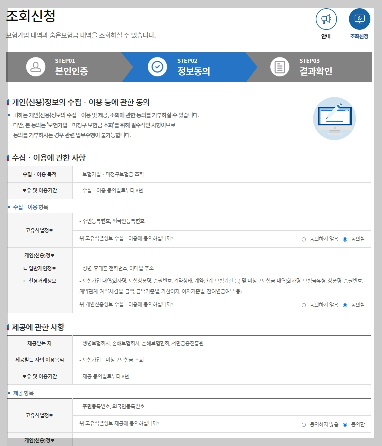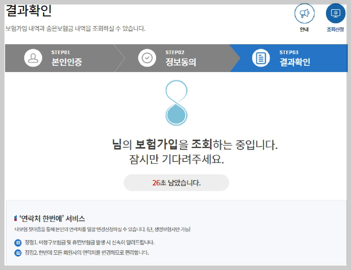 가입조회를 합니다. 시간은 40초에서 1분정도 걸립니다.