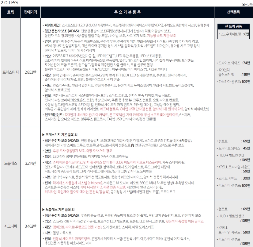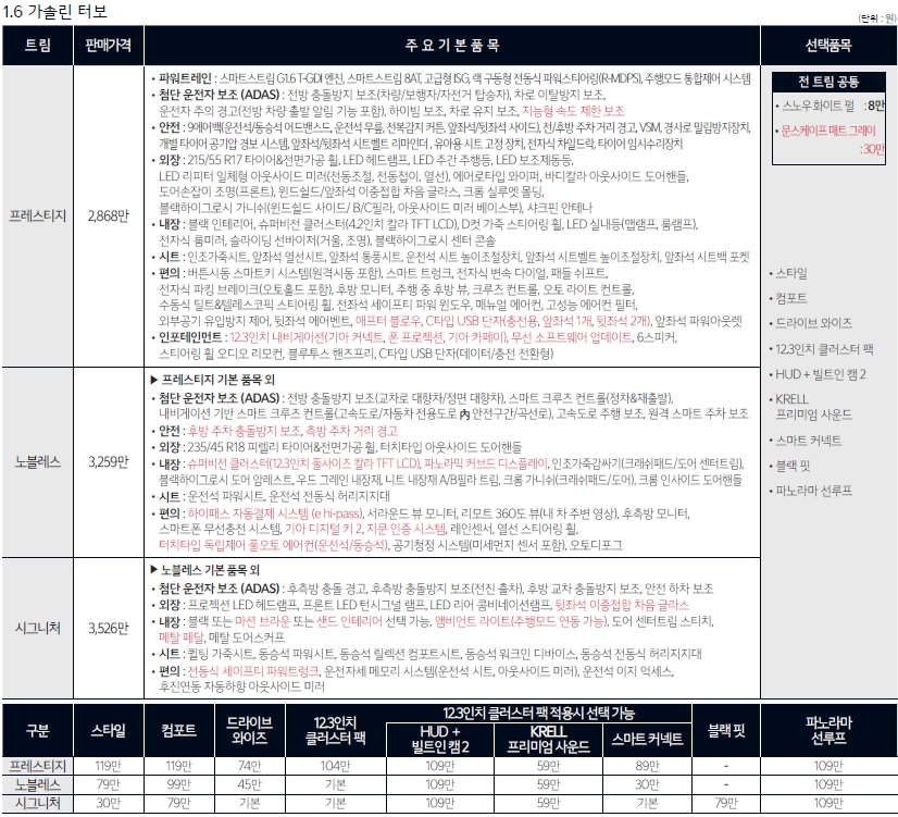 정확한 가격과 옵션사양은 공식 PDF를 통해 확인할수 있습니다.