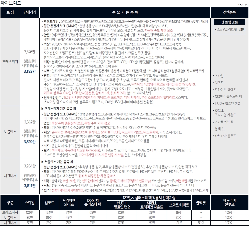 하이브리드는 세제혜택후 3100만원대에 구매가 가능한데요. 이렇게 되면 사실 하이브리드를 안살 이유는 없습니다.
