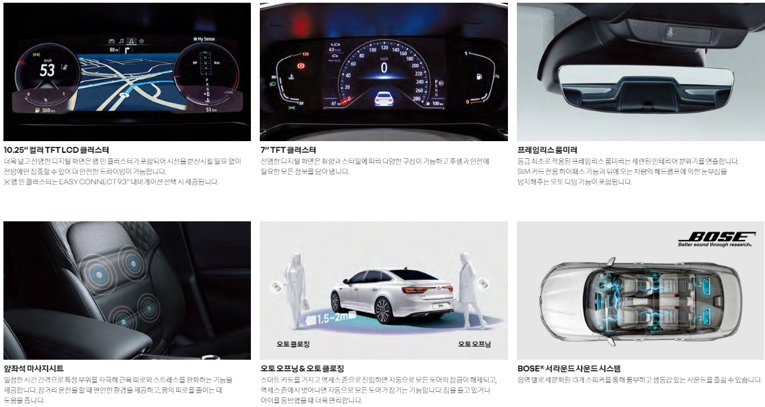 르노삼성차에서 삼성을 빼면서 정통 프랑스 자동차의 존재감을 나타내기 시작한 르노코리아의 마지막남은 세단모델입니다. 사실 현재 모든모델이 로장주로 교체를 하고 있습니다만, SM6만큼은 아직 태풍로고를 사용하고 있네요. 조만간 후속모델이 나오는거 아닐지 지켜봐야하겠습니다.