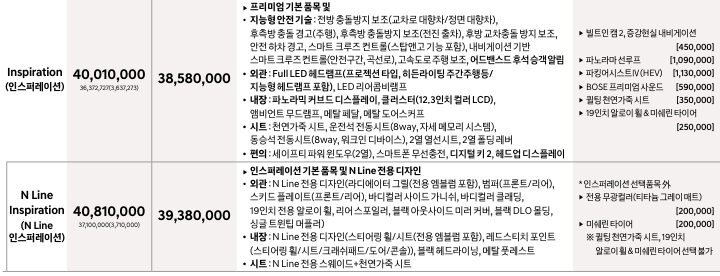 n라인은 디자인 디테일에 많은 부분이 추가 되었습니다. 하지만 파워트레인은 일반모델과 같기때문에 퍼포먼스측면에서는 크게 다르지는 않습니다.
