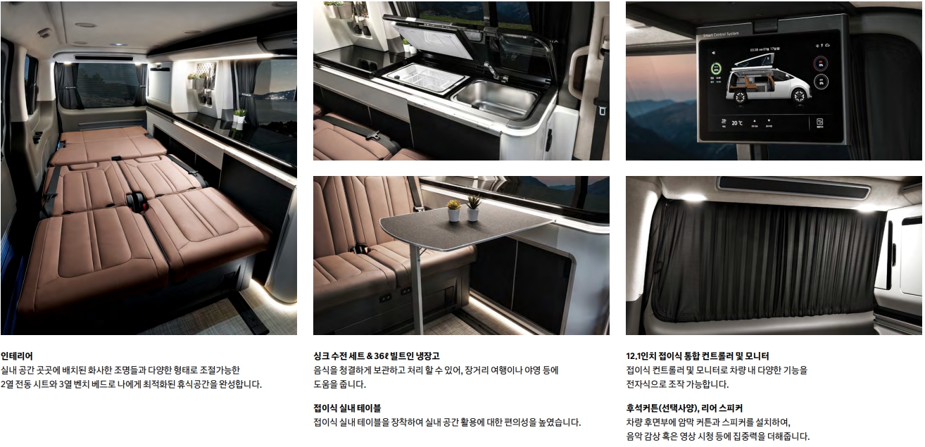 현대자동차에서 스타리아를 이용한 캠핑카를 출시하였습니다. 확실히 개조가 아닌 순정으로 제작이 되는만큼 퀄리티는 상당할것으로 보입니다. 거기에 캠핑카소유주들의 가장 큰 고민은 지하주차장 출입여부 일텐데요. 2100미리가 안되는 높이로 지하주차장출입에 제한이 없습니다.