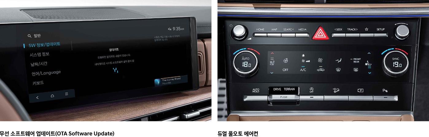 그랜저와 유사한 실내디자인입니다. 기본적으로 실내를 넓게 보여주는 가로형 레이아웃입니다.