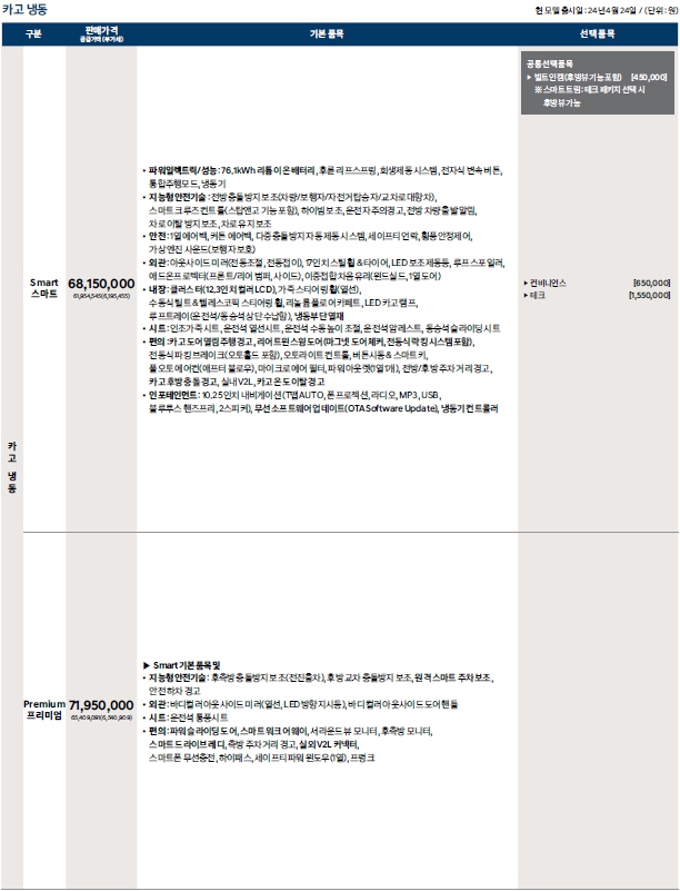 정확한 가격과 옵션은 위에 공식  PDF를 클릭해보세요.