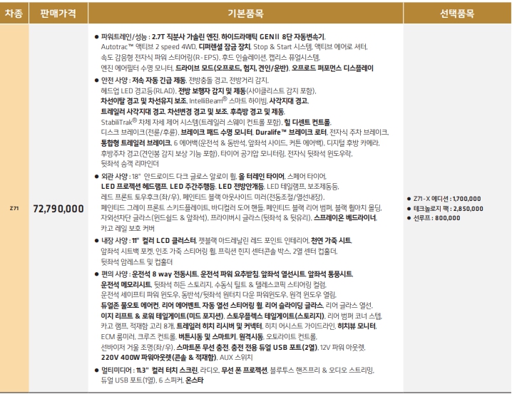 2025 올뉴 콜로라도 가격표와 제원(풀체인지)연비 신형