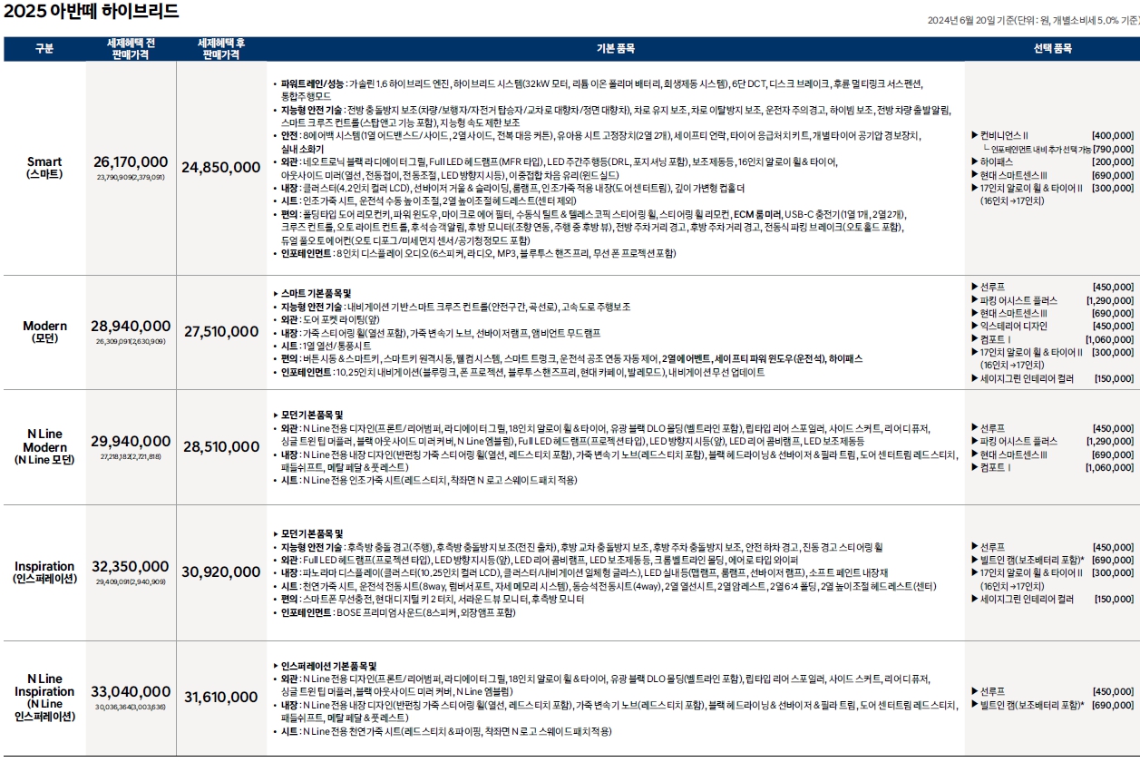 | 2025 현대 그랜저 가격표 와 제원 옵션 (하이브리드) (0) | 2024.06.21 |