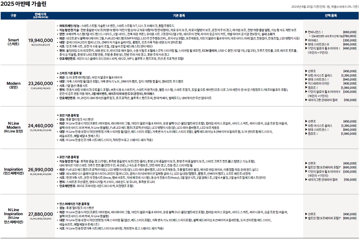 국민 세단 아반떼의 2025년식이 출시되었습니다. 여전히 국산차 최고의 판매량을 자랑하는 모델인데요. 한달에 꾸준히 4000대이상씩 판매되고 있습니다. 사회초년생, 회사 영업차량, 아이들 픽업차량등으로 많은 사랑을 받고 있죠. 이번 연식변경차량은 가격과 옵션이 어떤지 알아보겠습니다.
